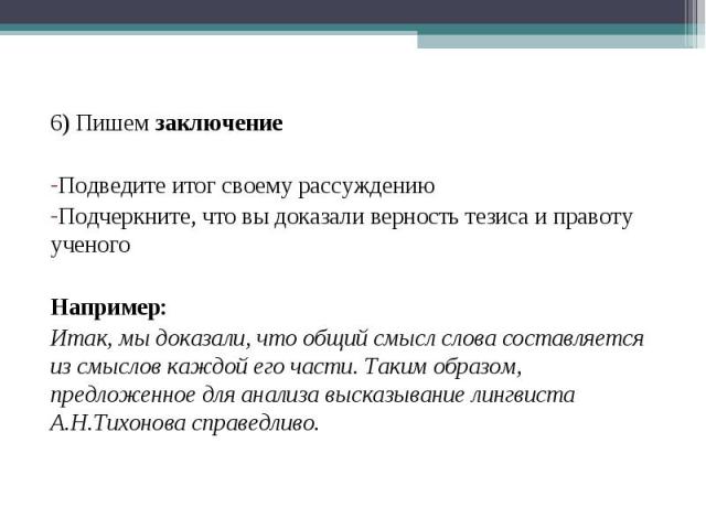 Как писать вывод по истории. Правила выводов в курсовой работе и реферате (выводы по главам, выводы в заключении)