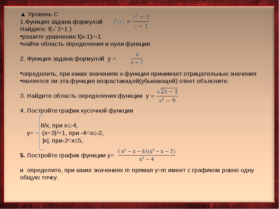 В математике функция – это правило, которое принимает входное значение (часто \ (x \)) и присваивает ему выходное значение (часто \ (y \)). Что делает функцию особенной, так это то, что для любого заданного входа существует только один выход. Нотация функций, которая используется во всей математике, – это способ записать правило, которое связывает входные и выходные значения функции.В этом уроке мы рассмотрим, как работает нотация функций, как оценивать функцию с учетом обозначения функции и как оценивать функцию по ее графику.
