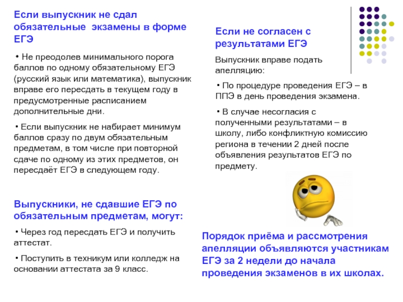 Я могла пойти на апелляцию , но не стала этого делать. Я решила, что буду поступать не с химией-биологией-русским, а химией-математикой-русским. Да и апелляция – дело мутное. Баллы там возвращают очень неохотно, а могут и забрать. У меня друг годом ранее сдавал английский. Баллы ему занизили, он пошел на апелляцию, этот балл ему вернули, но тут же сняли в другом месте. И знаете за что? За почерк, мол букву “r” он пишет не так как положено. В общем, вы можете испытать судьбу, я не стала.