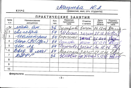 - Список зачетов, которые нужно сдать до начала сессии.