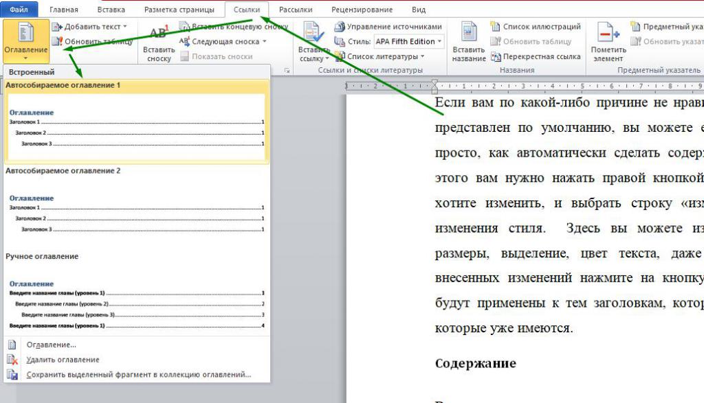 оглавление автоматически, вручную или