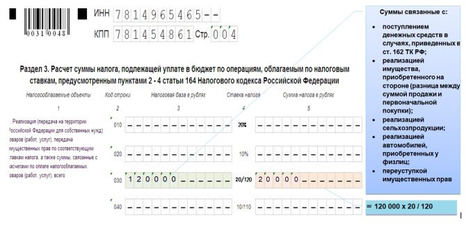 - имеющие подтверждение налоговые базы и относящиеся к ним вычеты с разбивкой этих данных по кодам операций — в строках 030–050;