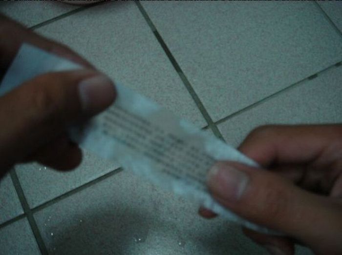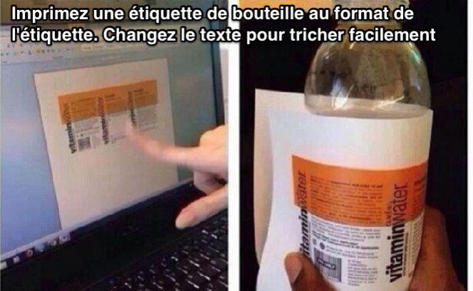 Для такой шпаргалки вам понадобится бутылка с непрозрачным напитком . Отклейте с нее этикетку, напишите на внутренней стороне текст и вновь приклейте на место. Немного отпейте жидкость до верхнего уровня этикетки. Теперь при наклоне бутылки вам будет видна шпаргалка.