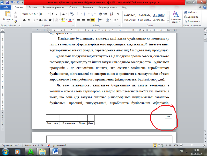 Чтобы разбить готовый проект на разделы, нужно применить к документу функцию «разрыв страницы». - Колонтитулы. Рамки нужны не на всех страницах. На тех из них, где штамп не предусмотрен, следует отключить колонтитул.