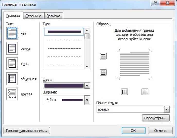 Шаблоны рамок в текстовом документе бывают следующих типов: