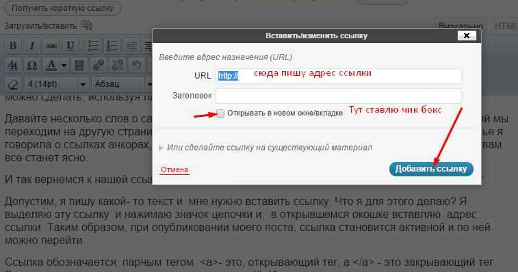 Встроенная ссылка будет содержать текст, также называемый якорным текстом — вы вставляете ссылку под выбранной фразой. Эти ссылки довольно легко создать с помощью HTML-редактора, такого как тот, который используется в WordPress или многих других системах CMS. Многие обычные пользователи и создатели веб-сайтов обычно могут нажать кнопку «Добавить ссылку». Просто введите якорный текст, отметьте его мышью и нажмите кнопку ссылки.