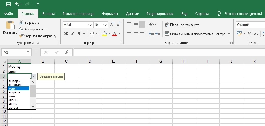 Создание раскрывающегося списка в Excel
