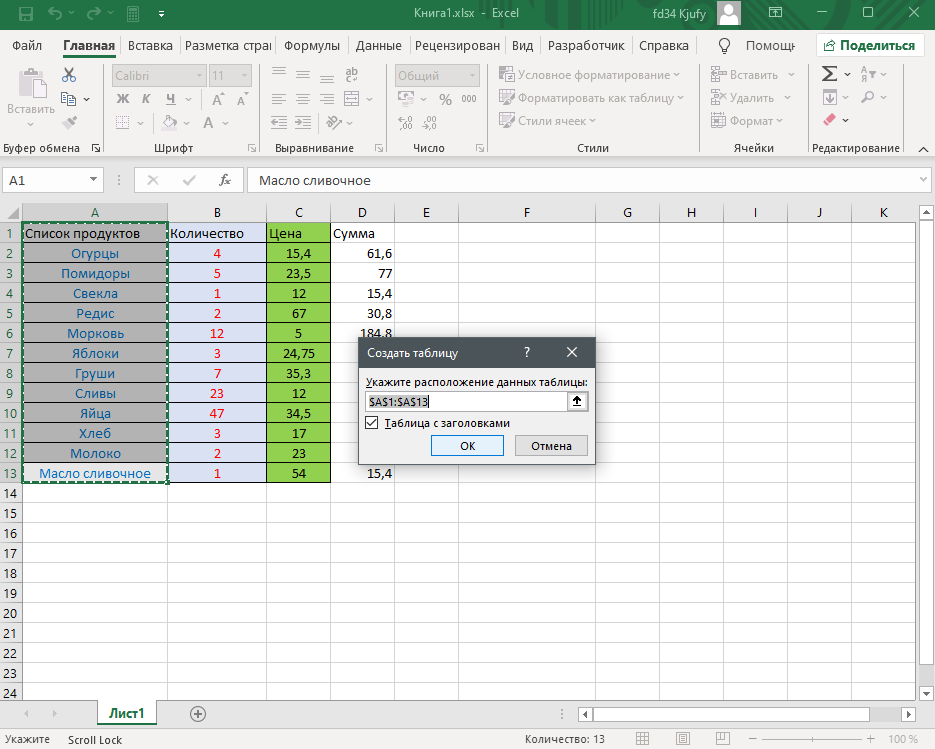Чтобы как-то разбавить эту серую массу данных, нам потребуется инструмент условного форматирования. При помощи его мы в несколько кликов раскрасим наши товары в соответствующие цвета и нам будет значительно проще различать где какой вид продукта выбран.