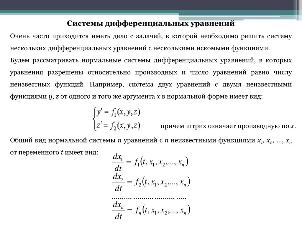 Дифференциальные уравнения – Системы дифференциальных уравнений