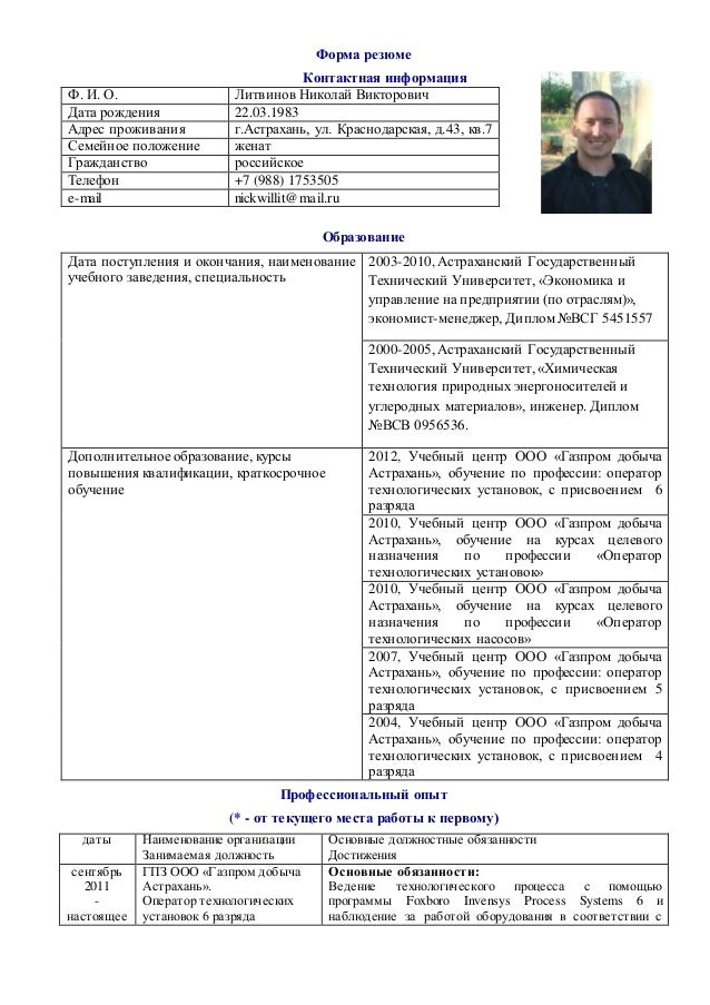 Следует как можно подробнее излагать факты производственной биографии и минимум – личной. Это позволит показать, что Ваша жизнь в большей степени ориентирована на работу, нежели на досуг. Не стоит излагать подробно автобиографию, детали, связанные с Вашим детством или историю Ваших браков. Не стоит указывать наличие прав на вождение автомобиля, если Вам предстоит работать в офисе.