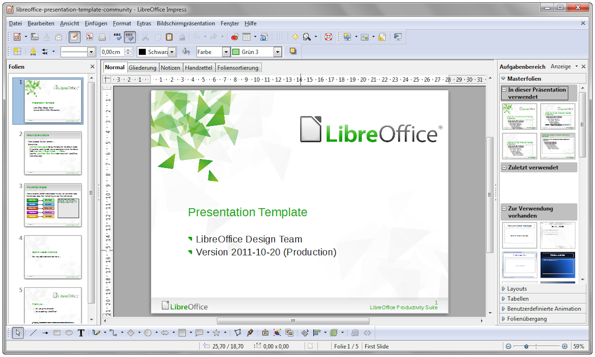 Перед созданием слайдов убедитесь, что вы используете шаблон, который определяет глобальные свойства, такие как шрифты, цвета и стили объектов / диаграмм. Небольшие затраты времени на их определение в начале предотвращают значительную потерю производительности в конце, перестраивая контент, чтобы он выглядел согласованным.