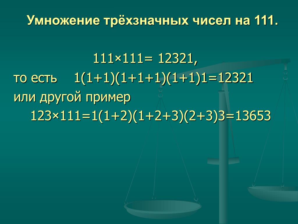 - При умножении 11 на любое натуральное число, состоящее из одной цифры, произведение этого натурального числа записывается дважды.