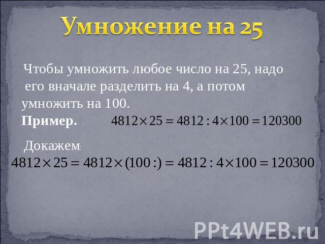 Если под рукой нет калькулятора, то можно воспользоваться несколькими приемами упрощения таких вычислительных операций, как сложение, вычитание, умножение и деление.