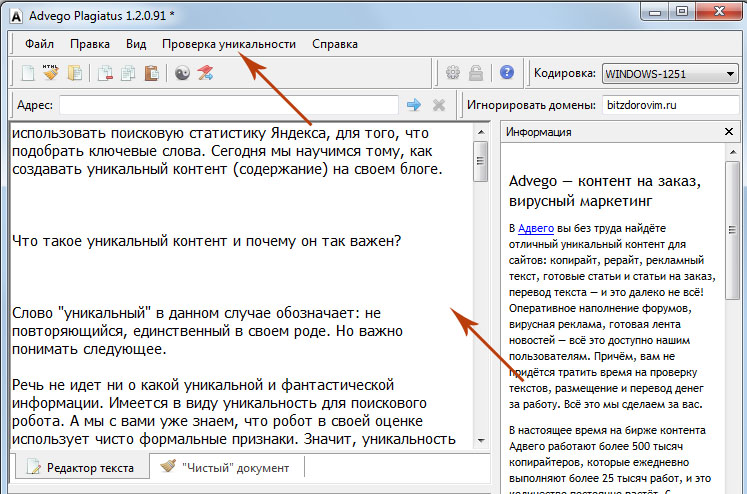 //Как повысить уникальность текстаСлучается так, что статья, написанная с воодушевлением и собственными исследованиями, с лирическими отступлениями и личными неологизмами, попадает в категорию неуникальных. Алгоритм, по которому поэтапно проводится проверка текста на уникальность работает так, что даже наиболее оригинальные тексты могут стать такими.