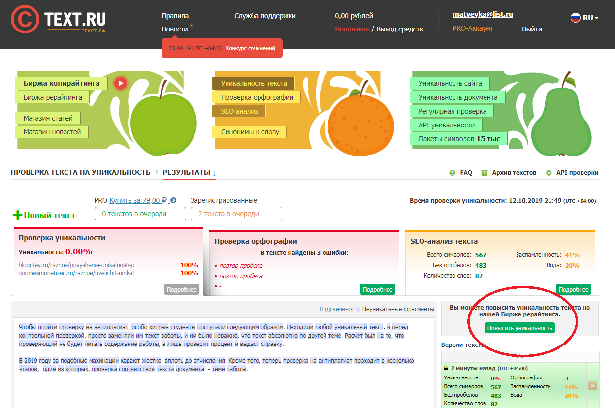 Поднять оригинальность, повысить уникальность текста в Антиплагиат