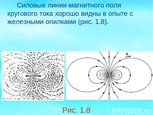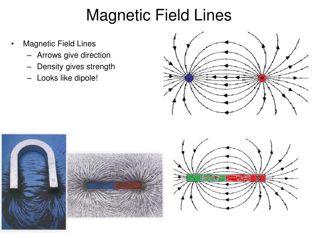 — опилки намагничиваются, и когда их встряхивают, то они на мгновение отделяются от пластинки, и легко поворачиваются, формируя — сложные изогнутые линии, расходящиеся от полюсов.