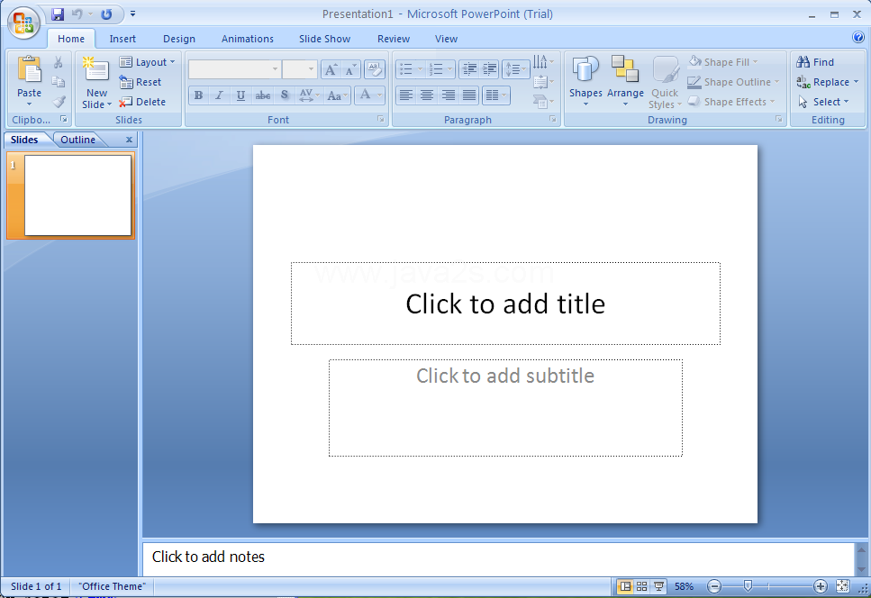 На слайде будет нарисован небольшой прямоугольник по умолчанию.