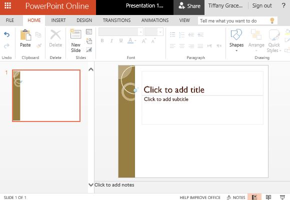 Из PowerPoint Web App пользователь может просматривать презентацию. Если на компьютере пользователя установлен PowerPoint, он также может открыть презентацию в PowerPoint, отредактировать презентацию, добавить комментарии и сохранить отредактированную презентацию в исходном расположении OneDrive.