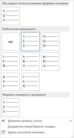 - ΠΡΠΈ Π½Π°ΠΆΠ°ΡΠΈΠΈ Π½Π°Β ΡΡΡΠ΅Π»ΠΎΡΠΊΡ Π²Π½ΠΈΠ·, ΡΡΠ΄ΠΎΠΌ ΡΒ ΠΊΠ½ΠΎΠΏΠΊΠΎΠΉ Β«Π‘ΠΎΠ·Π΄Π°Π½ΠΈΠ΅ Π½ΡΠΌΠ΅ΡΠΎΠ²Π°Π½Π½ΠΎΠ³ΠΎ ΡΠΏΠΈΡΠΊΠ°Β», Π²Β Π²ΡΠΏΠ°Π΄Π°ΡΡΠ΅ΠΌ ΡΠΏΠΈΡΠΊΠ΅ ΠΌΠΎΠΆΠ½ΠΎ Π²ΡΠ±ΡΠ°ΡΡ ΡΡΠΈΠ»Ρ Π½ΡΠΌΠ΅ΡΠ°ΡΠΈΠΈ ΠΈΠ»ΠΈ Β«ΠΠΏΡΠ΅Π΄Π΅Π»ΠΈΡΡ Π½ΠΎΠ²ΡΠΉ ΡΠΎΡΠΌΠ°Ρ ΡΠΏΠΈΡΠΊΠ°Β».