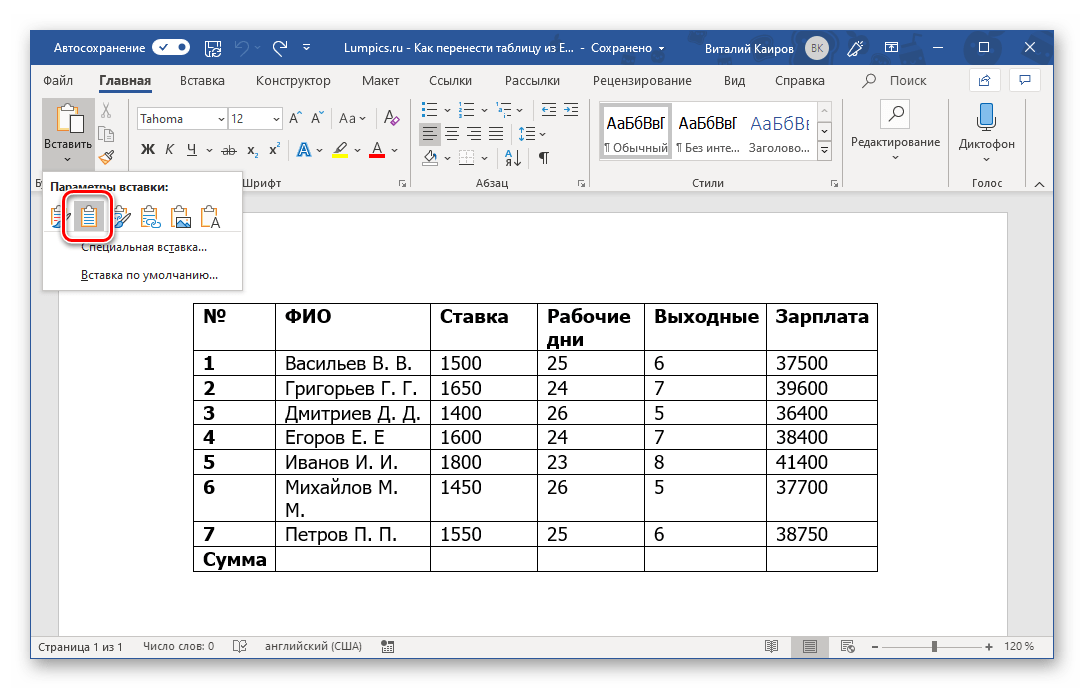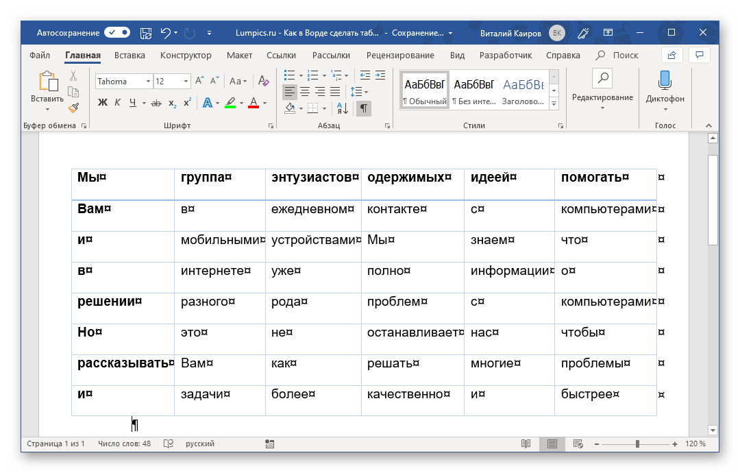 - Как видите, Word обнаружил, что данные в одной строке отделяются друг от друга вкладками и полями.