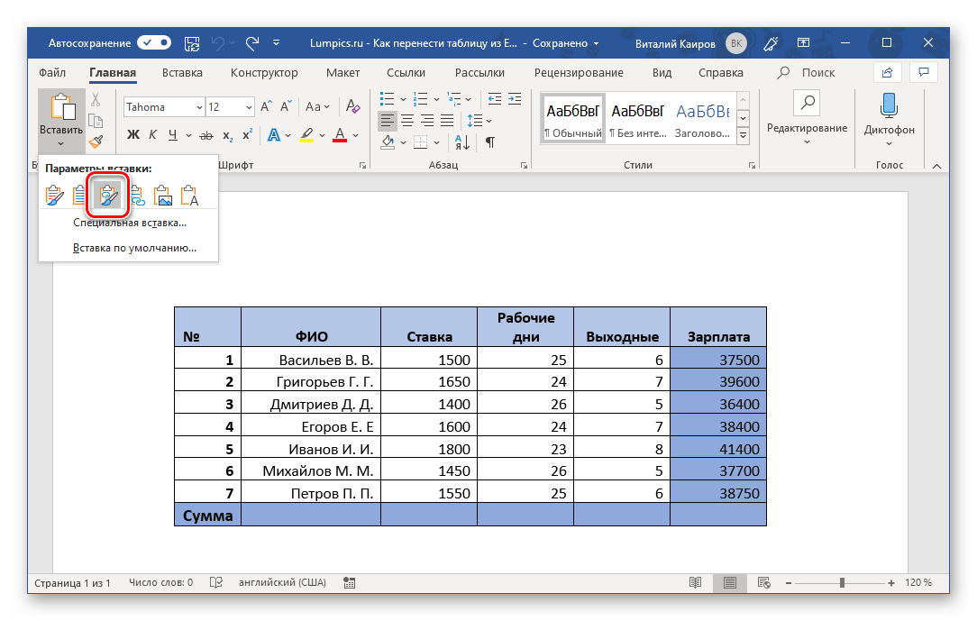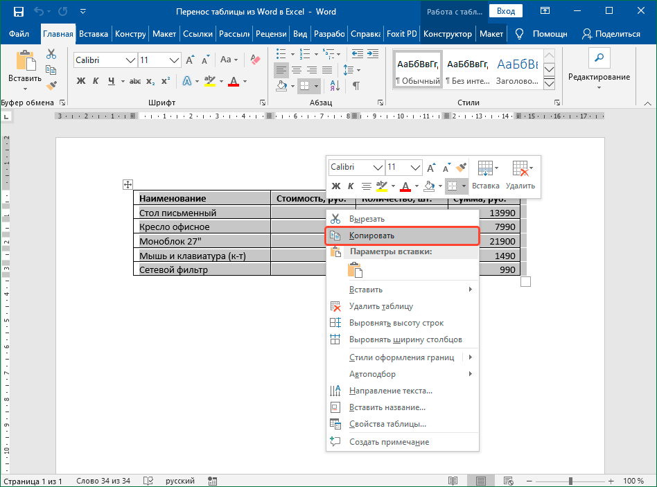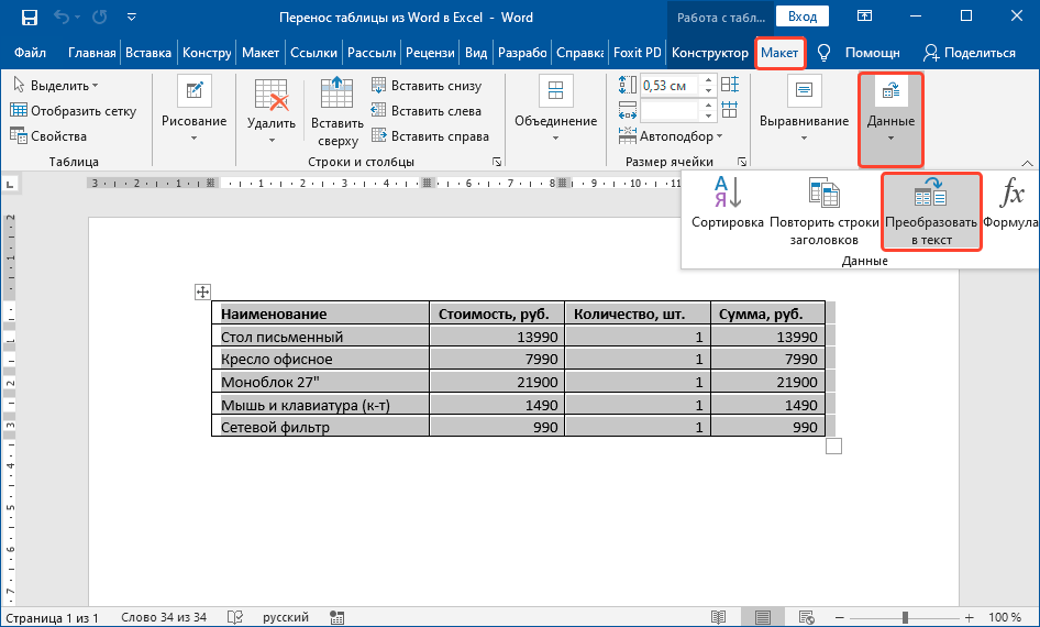 Как преобразовать таблицу в диаграмму в Microsoft Word