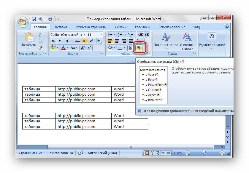 Чтобы сделать табуляцию и знаки абзацев видимыми, просто щелкните значок «Отобразить все знаки» на вкладке «Главная». Еще одно нажатие на этот значок скрывает эти отметки.