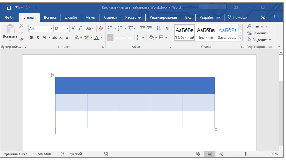Щелкните ячейку таблицы. На ленте появится вкладка «Работа с таблицами» в ней выберите «Конструктор». Разверните список «Стелей», щелкнув значок «Дополнительные параметры» и выберите из множества предлагаемых стилей (см. Следующий рисунок). Просто наведите указатель мыши на стиль, чтобы просмотреть его влияние на документ, и щелкните, чтобы применить его к таблице.
