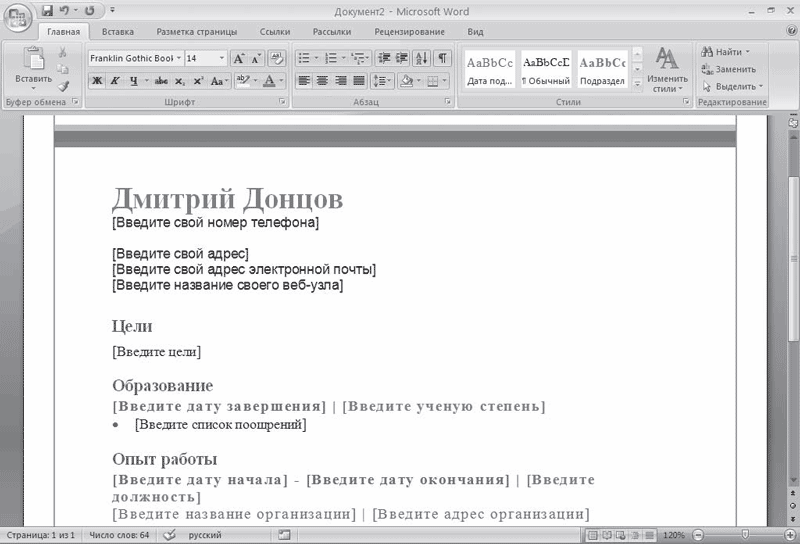 (4) Замените все «наполнители» текст с вашей информацией