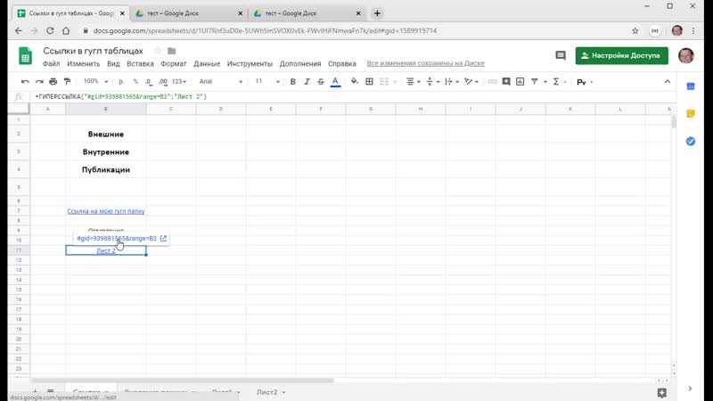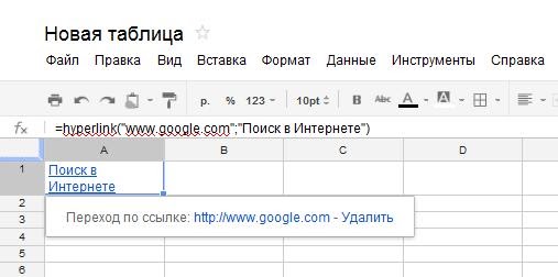 Еще одна полезная примудрость — кастомные ссылки. Если просто вставить ссылку в ячейку, ячейка станет ссылочной, при клике на которую появляется попап со ссылкой, по которой можно перейти. Если использовать следующий формат, то текст в ячейке может быть каким угодно: