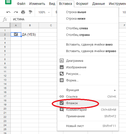 Вставить изображение в Google Sheets