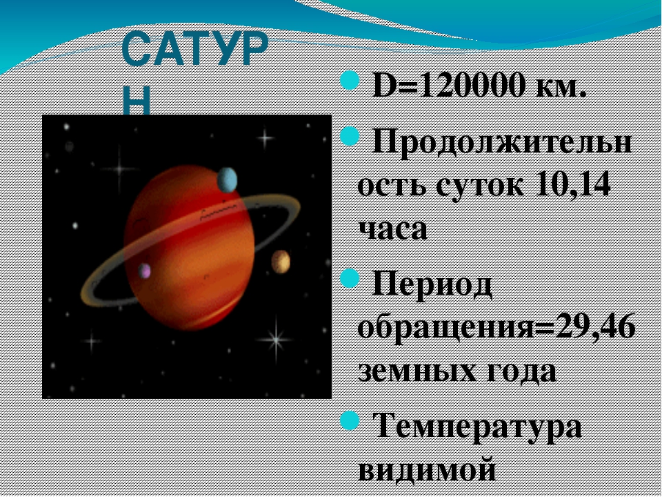 Сатурн – шестая планета от Солнца со средней температурой -140 градусов Цельсия. Это вторая по величине планета Солнечной системы после Юпитера.