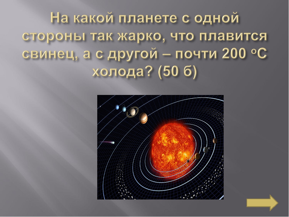 Название планет (от самой горячей до самой холодной) | Средняя температура (градусы Цельсия) |