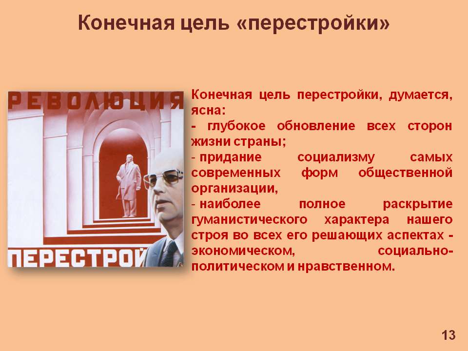 Поэтому мы должны видеть, что главные причины развития гласности в годы перестройки связаны с тем, что элита готовила планы по смене режима, а для этого были нужны реформы и перемены. Их и обеспечивали с 1985 по 1991 годы, в результате чего великая страна рухнула.