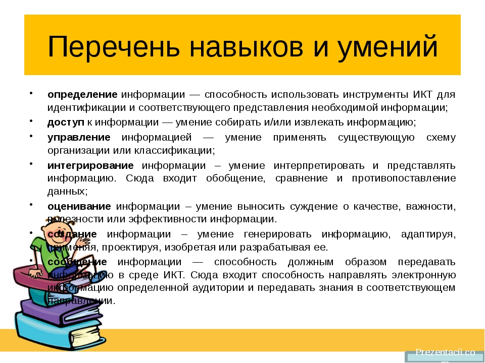 Навыки бывают простые и сложные. Если человек владеет каким-то сложным навыком, то обычно он владеет также и теми, что проще. То есть если вы умеете, к примеру, анализировать информацию, то вы также владеете более простыми навыками: сравнивать, копировать, собирать информацию. Это не правило, но обычно это так.