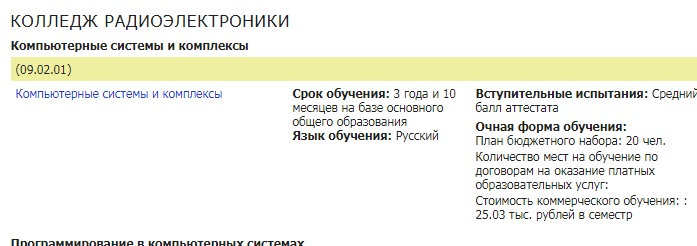 09.02.07 | Информационные системы и программирование | Программист | основное общее (9 кл) |