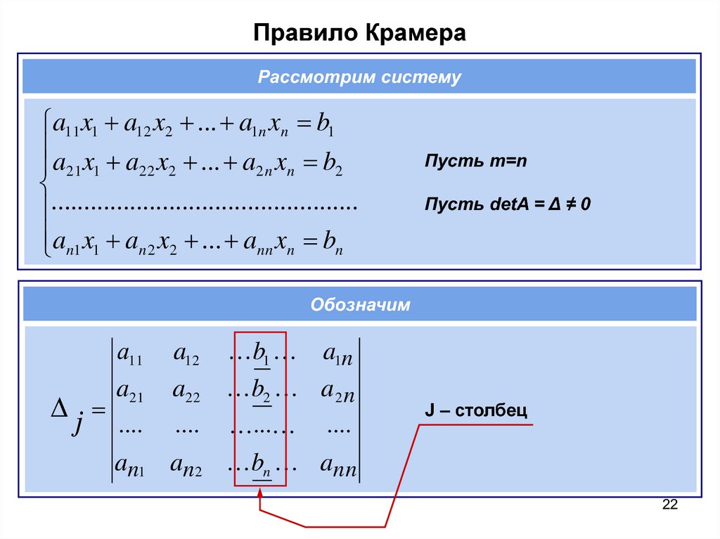 Решение матрицы по правилу крамера. Линейные уравнения