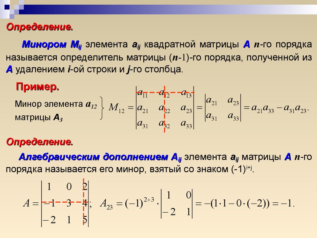 где A ij – алгебраические дополнения к элементам a ij матрицы