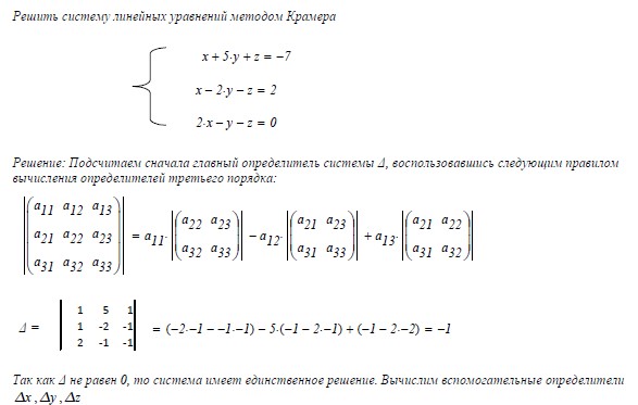 Примеры решения систем линейных уравнений методом Крамера