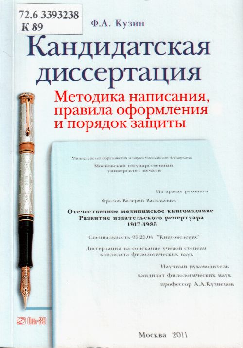 К работе над диссертацией кандидата допускаются лица с высшим образованием, защитившие магистерскую квалификационную работу или дипломную работу специалиста.