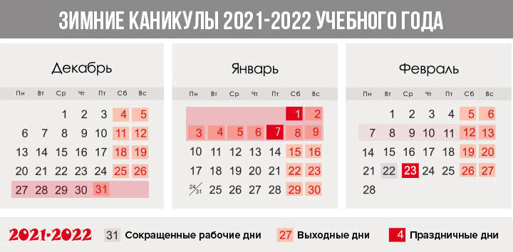 - Рождественские каникулы: 2–3 недели с 22 декабря 2021 г. по 7 января 2022 г.
