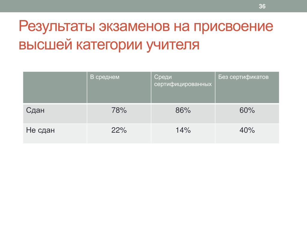 Основные категории учителей в школе делятся на две: первую и высшую. Процедура в обоих случаях практически идентична, но отличается количеством требуемых баллов и описанием результатов их работы, рассматриваемых аттестационной комиссией.