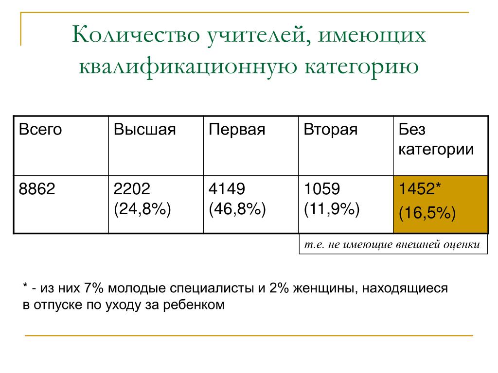 Квалификационные категории учителей