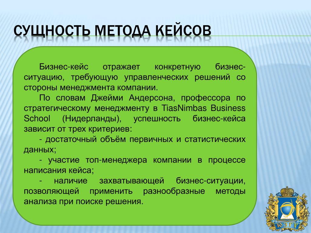 По словам Джейми Андерсона, профессора по стратегическому менеджменту в TiasNimbas Business School, Нидарланды, успешность бизнес-кейса зависит от трех критериев: