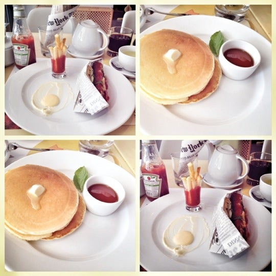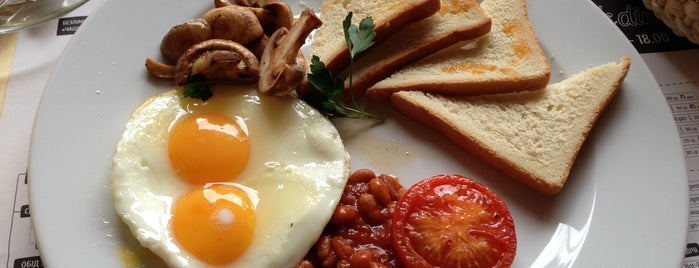 Блины и сырники подают с кленовым сиропом, мёдом и джемом, а большие оладьи-панкейки — с арахисовым маслом, горячим шоколадом и черникой. Как и подобает дайнеру, в «Желтке» предлагают классический американский завтрак — гранолу, запечённую смесь из овсяных хлопьев с орехами, молоком и мёдом.
