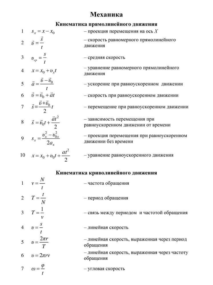 Основные формулы по физике | Студенческая жизнь