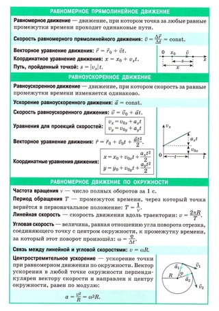 Основные формулы с пояснениями, которые помогут в решении заданий ЕГЭ по физике: движение, скорость, ускорение.