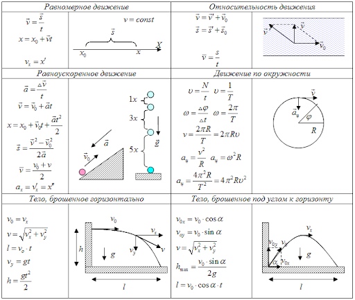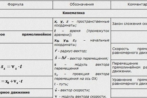 Формулы кинематики с пояснениями по физике / Блог :: Бингоскул