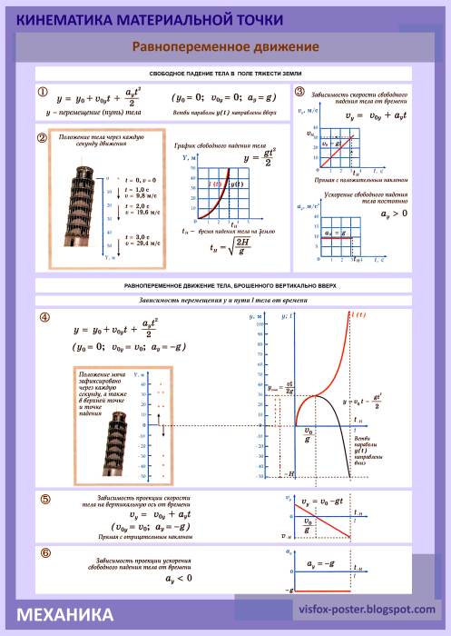 Свободное падение по вертикали является частным случаем равноускоренного прямолинейного движения. При этом движении ускорение равно 9,8 м/с2. Обозначается буквой g и называется ускорением свободного падения.
