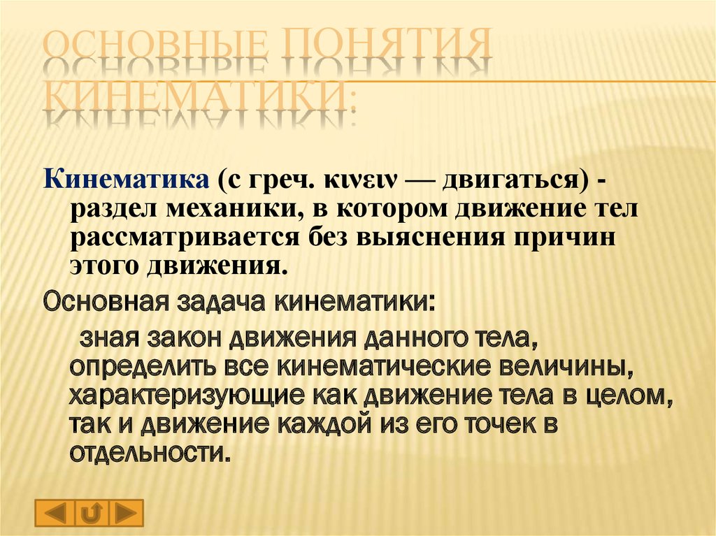 - Кинетика – это раздел физики, изучающий причину движения, поэтому в основном учитывается сила или крутящий момент. В то время как кинематика связана с такими параметрами, как положение , ускорение, скорость и т.д. тела во время движения.
