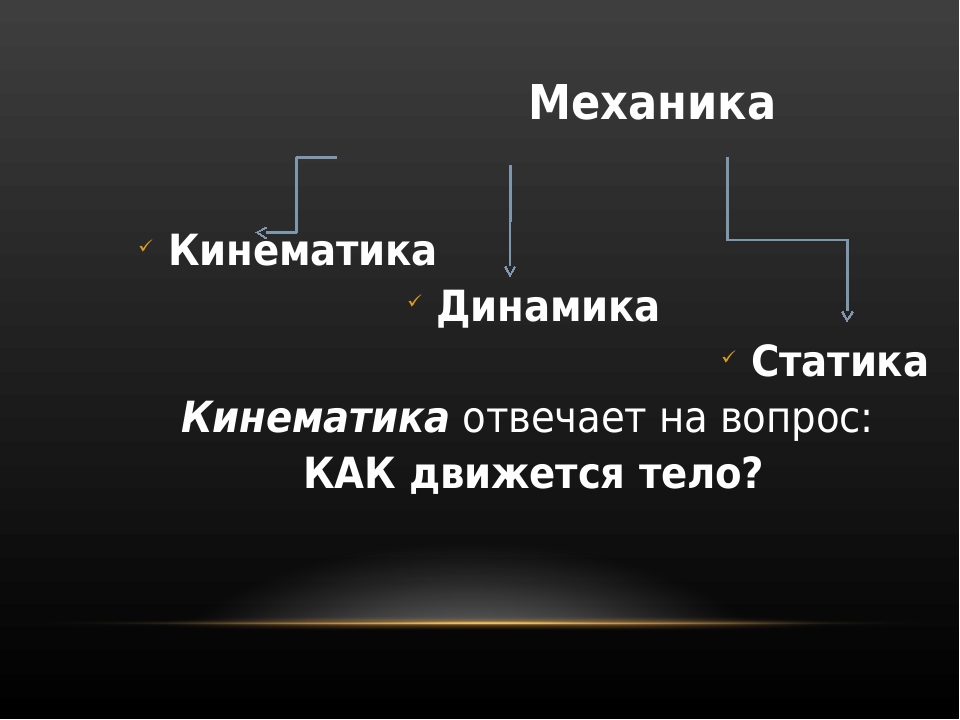 Механика изучает механическое движение тел, изучает способы его описания, а также исследует причины возникновения механического движения. Кинематика же, как раздел механики, изучает только механическое движение тел и способы его описания безотносительно причин возникновения этого движения.